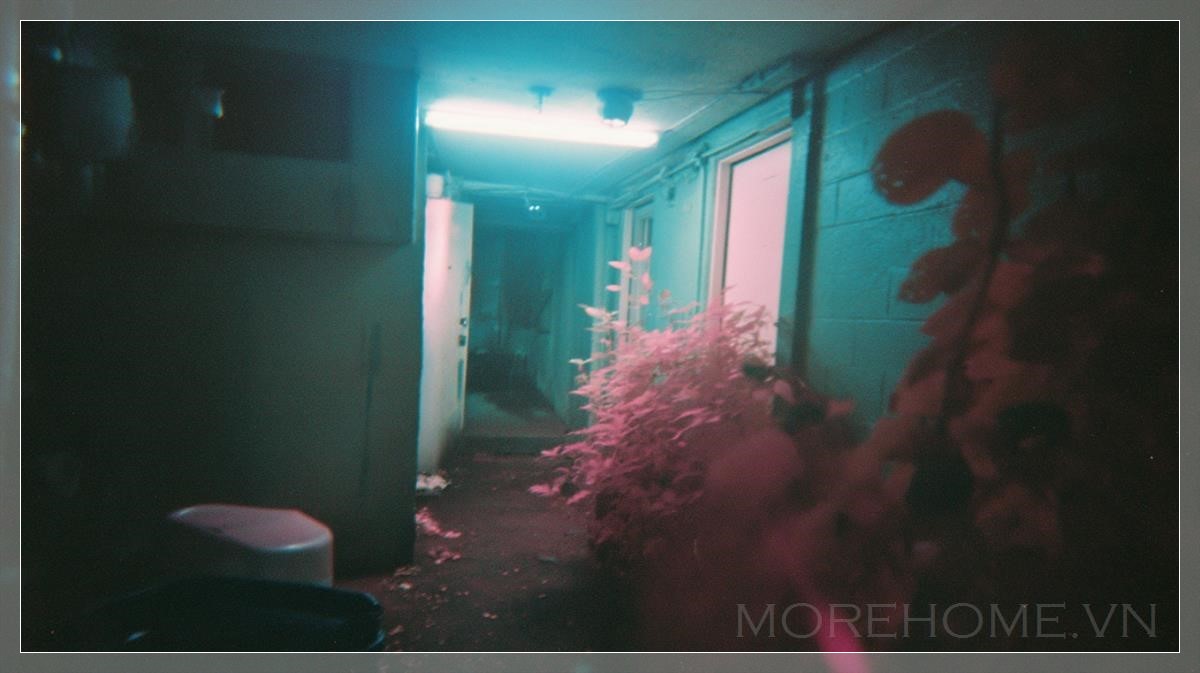 Trong phòng ngủ, bạn có thể bổ sung rèm vải dệt thô màu đất pha xám, cùng chăn ga gối đệm layer nhiều lớp vải lanh, len mỏng và nhung phai, để khi chiếu đèn IR nhẹ, chất liệu vải hiện lên như khung hình phim quay chậm, mềm mại nhưng lại có chút rợn rợn dễ chịu. Kết hợp bàn đầu giường nhỏ bằng gỗ tái chế, đèn bàn với bộ lọc IR chrome, để mỗi khi đọc sách hoặc nghe một đoạn băng cassette cũ, ánh sáng huyền ảo khiến tâm trí thả lỏng, như lạc vào miền kí ức mơ hồ.