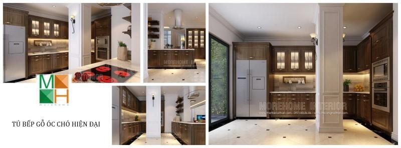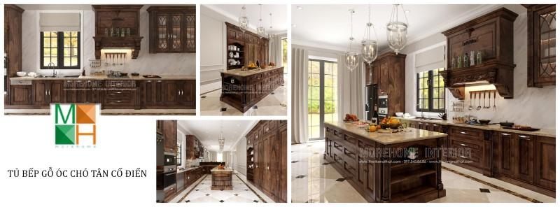 Bộ sưu tập các mẫu tủ bếp gỗ óc chó đến từ nội thất MoreHome luôn được khách hàng quan tâm và lựa chọn sử dụng cho không gian biệt thự.