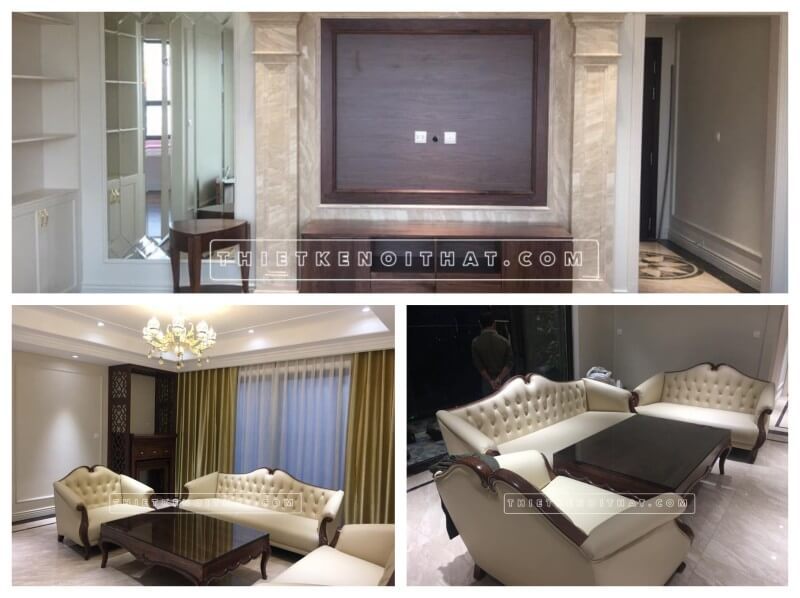 Việc thi công nội thất gỗ óc chó theo phong cách tân cổ điển sang trọng cao cấp sẽ góp phần tôn lên vẻ đẹp của không gian phòng khách và cung cấp sự tiện nghi cho sử dụng của gia chủ.