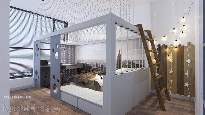 Thiết kế nội thất phòng ngủ hiện đại cho bé ở căn hộ chung cư.